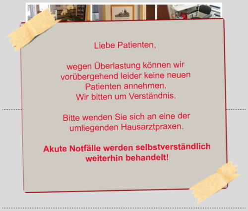 Bitte wenden Sie sich an eine der umliegenden Hausarztpraxen.